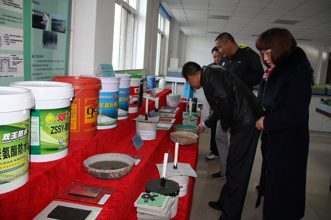 考察期间,一行领导听取了双玉集团公司近年来在防水材料方面科研创新成果所取得的成绩及未来几年发展思路的汇报,观看了集团公司和今年新研发生产的非固化、喷涂速凝橡胶沥青防水涂料,CPY反应粘高分子防水卷材产品介绍宣传片,在防水体验厅亲身体验和了解了公司各种防水材料的优越防水性能。