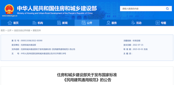 住房和城乡建设部关于发布国家标准《民用建筑通用规范》的公告